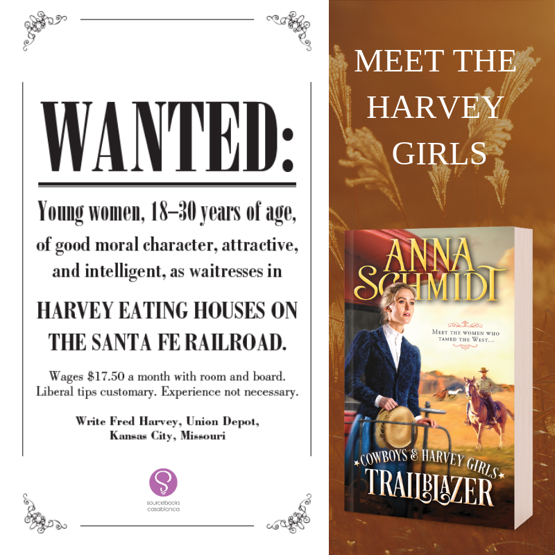 I’m going to be honest, I was a little hesitant with this book. I love historical western romances, but I worry when an author bases their book off an actual historical event or group of people, they will be more concerned about historical accuracy and details rather than the plot. Luckily, Anna Schmidt put my fears to rest. Trailblazer is about a young woman, Grace, who takes a job as one of Mr. Harvey’s famous Harvey Girls. Harvey Girls are waitresses who make a good wage but have strict rules, including that they are prohibited to get married.